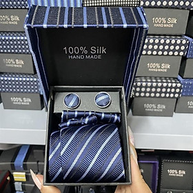 ✨Cà vạt nam màu xanh đen kẻ kèm hộp bản nhỏ 6cm dành cho nam thanh niên set đầy đủ mẫu t11-2023 Giangpkc 011-86
