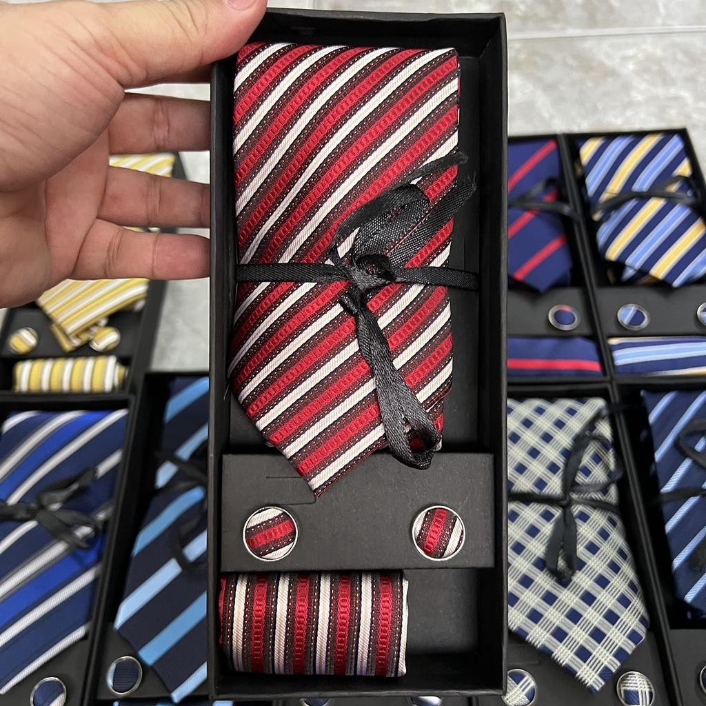 Cavat nam bản 8cm lót silk cao cấp nguyên hộp kèm khăn và khuy măng sét Giangpkc Qtp Sản phẩm cao cấp nguyên hộp quà tặng bản 8cm thích hợp cho trung niên - công