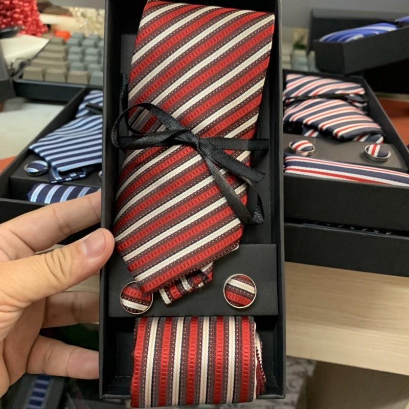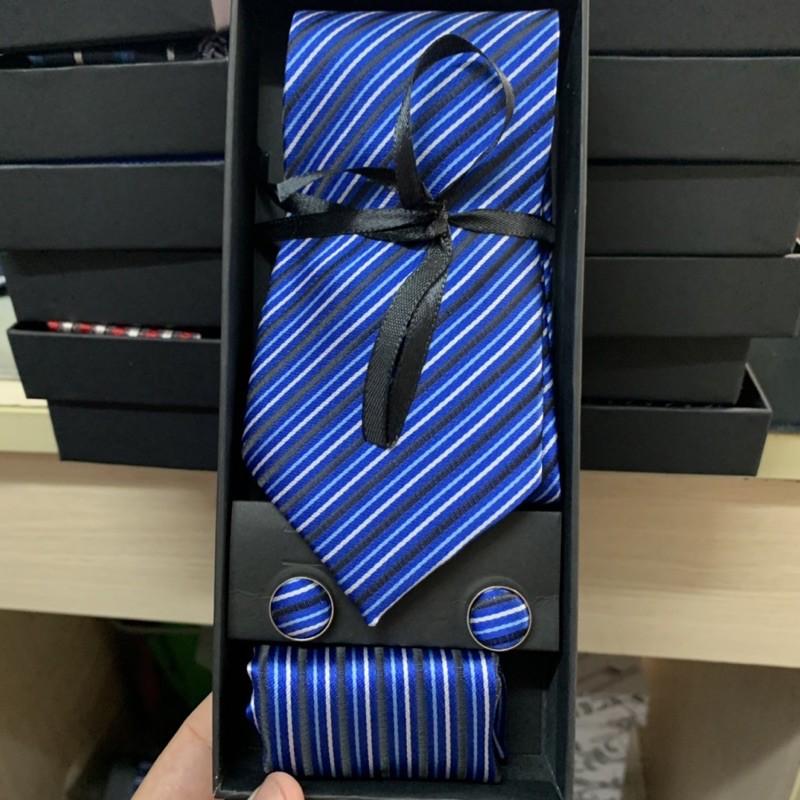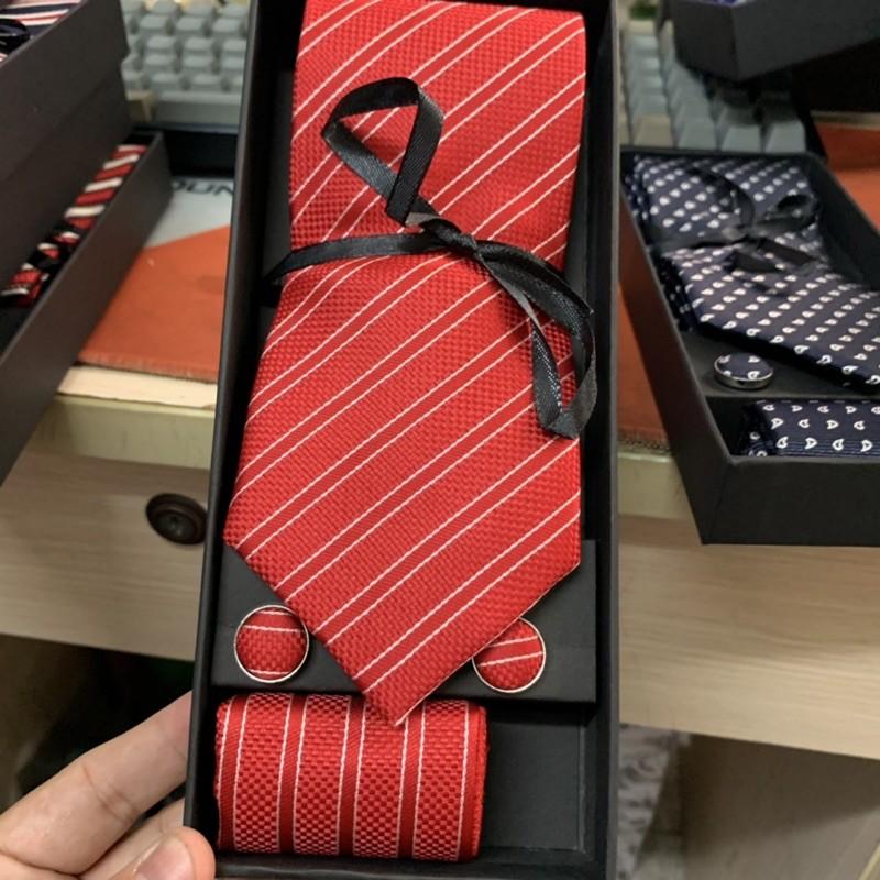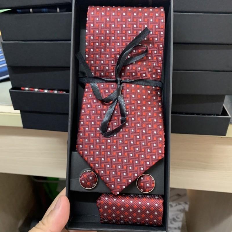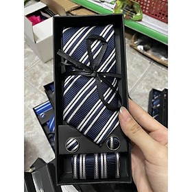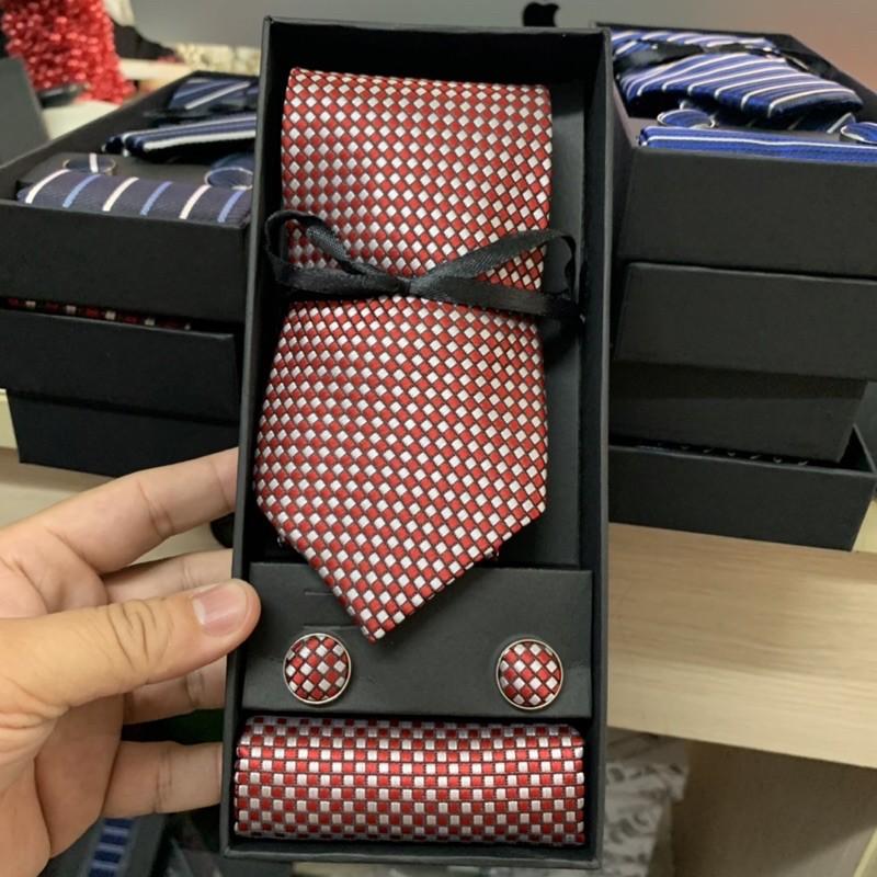 Hộp quà tặng gồm 1 cà vạt nam 8cm kích cỡ chuẩn 8cmx150 k. 1 hộp đựng cà vạt , 01 Khăn túi áo véc 20x20 cm , 1 cặp khuy áo măng sét cũng