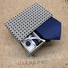 Cavat nam bản 8cm lót silk cao cấp nguyên hộp kèm khăn và khuy măng sét Giangpkc Qtp Sản phẩm cao cấp nguyên hộp quà tặng bản 8cm thích hợp cho trung niên - công