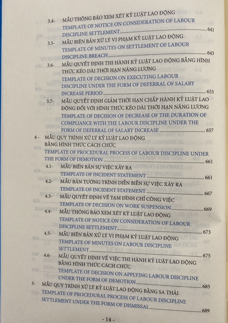 Các biểu mẫu không chỉ giúp cho độc giả các sườn tài liệu, mà tùy theo từng tình huống phát sinh cụ thể của từng vụ việc tại từng thời điểm khác nhau trong doanh nghiệp và trong các mối quan hệ lao động mà độc giả sẽ có những điều chỉnh, bổ sung phù hợp cho doanh nghiệp của mình.