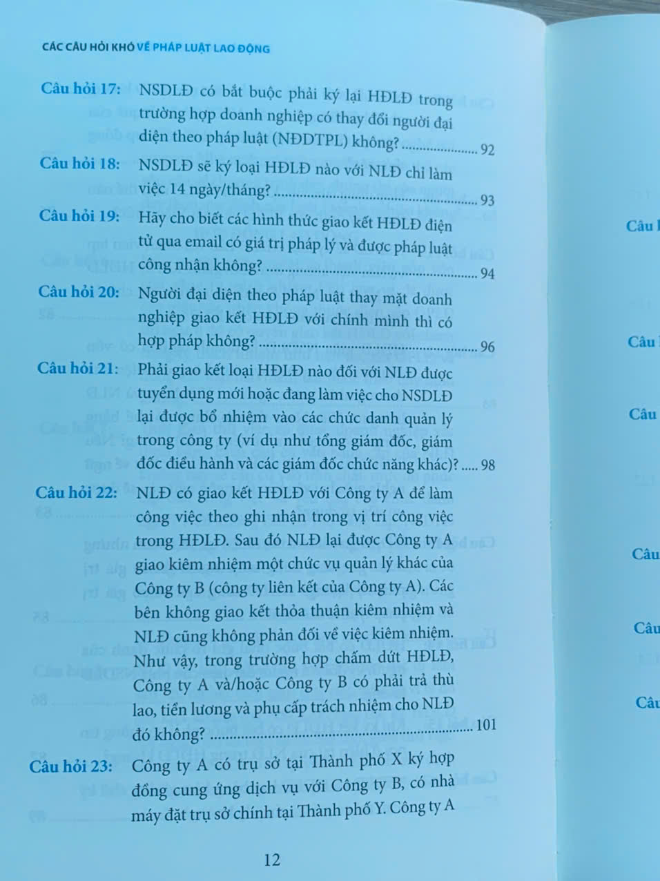 Trong lần xuất bản này, tác giả đã dành nhiều tâm huyết để xây dựng và hoàn thiện nội dung, nhằm mang đến cho độc giả những kiến thức chuyên sâu và mới nhất về lĩnh vực pháp luật lao động. Nội dung cuốn sách không chỉ dựa trên những quy định pháp luật mới nhất từ các cơ quan Nhà nước mà còn được xây dựng dựa trên những câu hỏi thực tiễn, khó khăn mà nhiều người gặp phải. Hy vọng rằng cuốn sách sẽ trở thành một công cụ hữu ích, giúp bạn đọc giải quyết những thắc mắc phức tạp và đạt được sự hiểu biết sâu rộng hơn về pháp luật lao động.