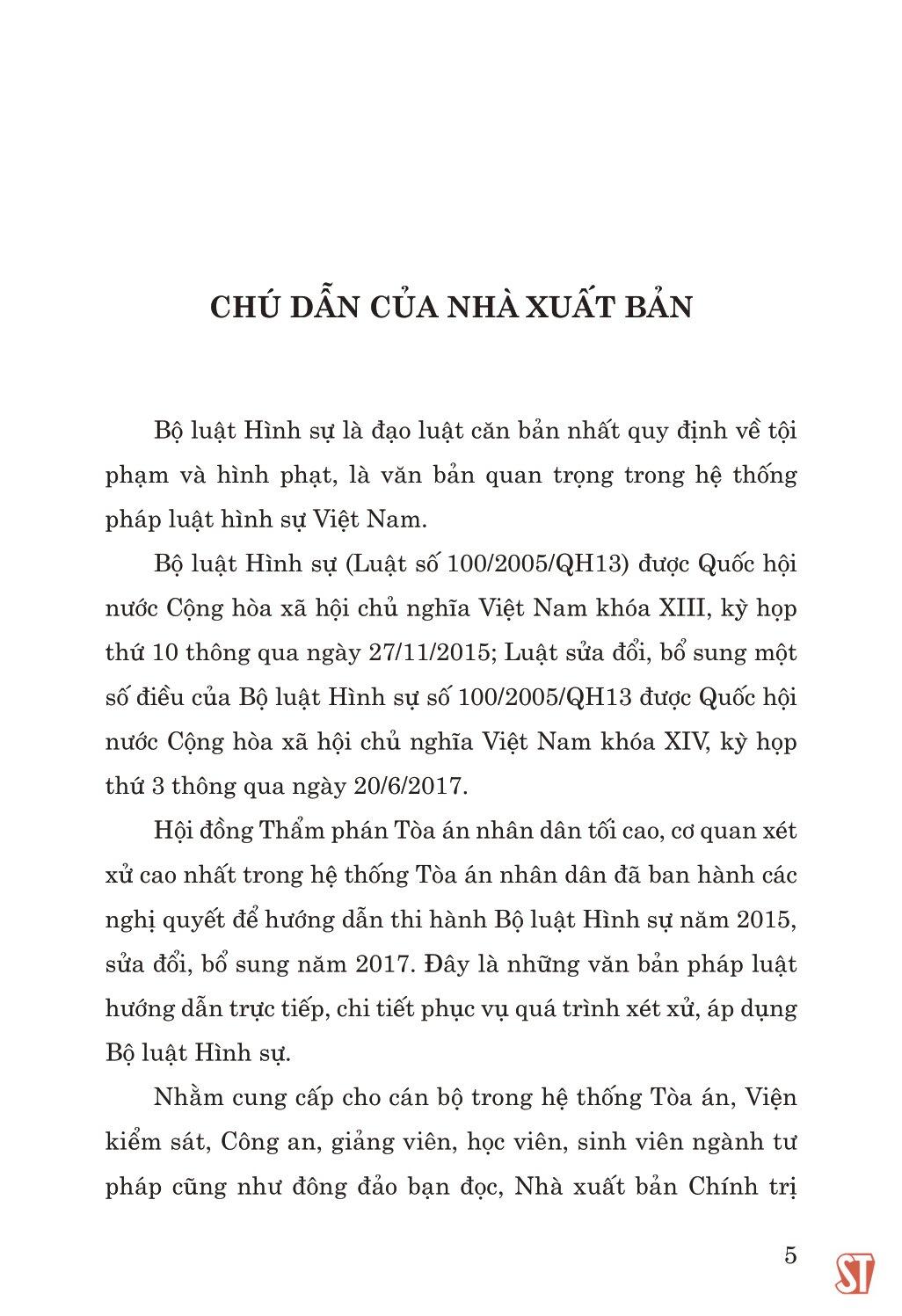 Nhằm đáp ứng nhu cầu tìm hiểu, nghiên cứu Bộ luật Hình sự của bạn đọc nói chung, của cán bộ làm công tác pháp luật, cán bộ nghiên cứu, giảng dạy pháp luật và