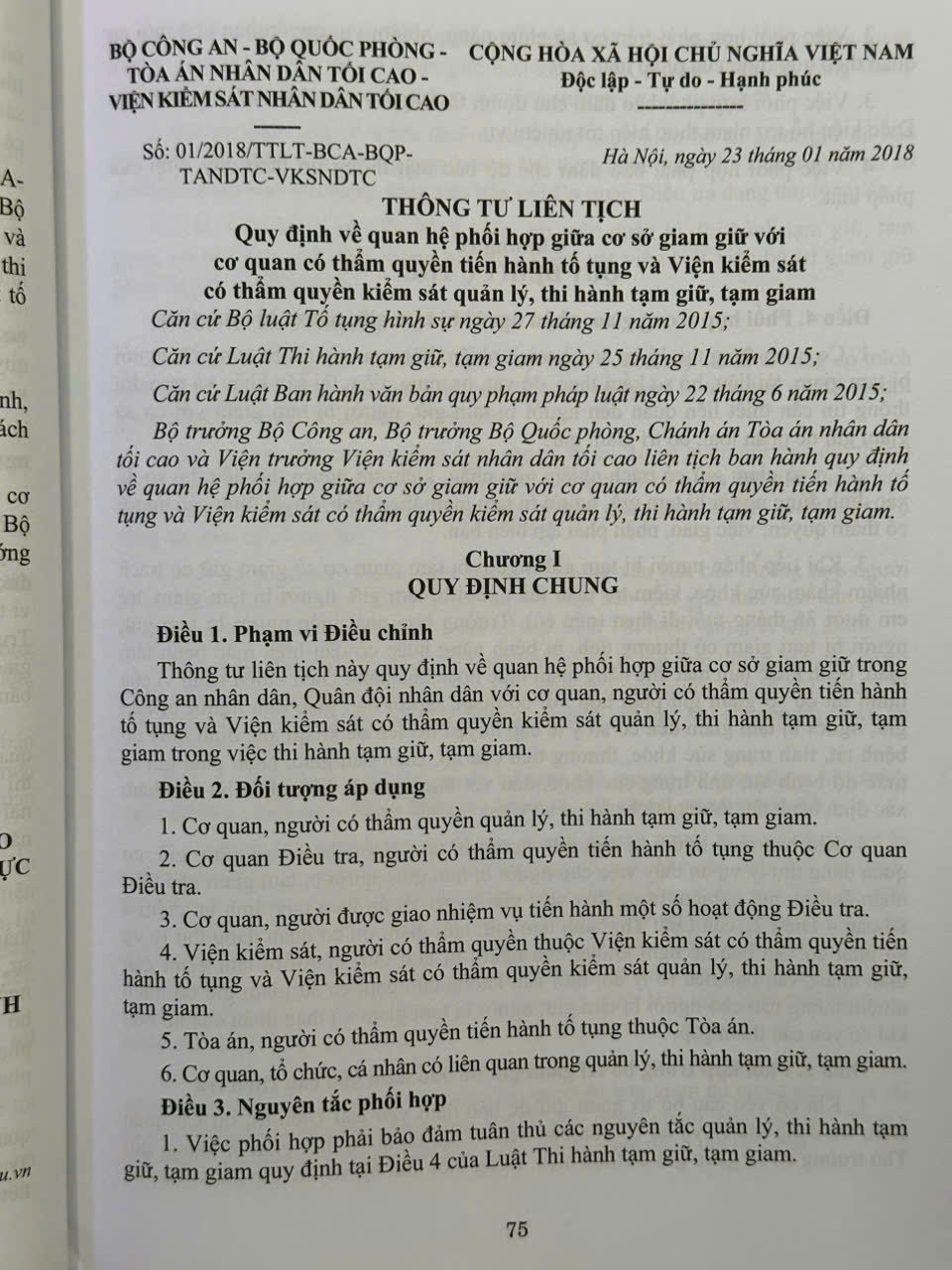 Phần thứ nhất: Các Thông tư liên tịch của Tòa án nhân dân tối cao – Viện Kiểm sát nhân dân tối cao – Bộ Tư pháp – Bộ Công an – Bộ Quốc phòng về hình sự