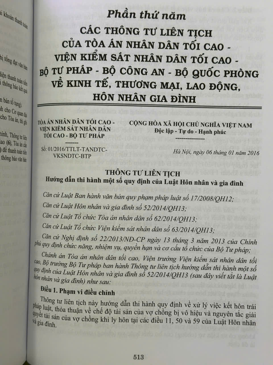 Phần thứ năm: Các Thông tư liên tịch của Tòa án nhân dân tối cao – Viện Kiểm sát nhân dân tối cao – Bộ Tư pháp – Bộ Công an – Bộ Quốc phòng về kinh tế, thương mại, lao động, hôn nhân gia đình