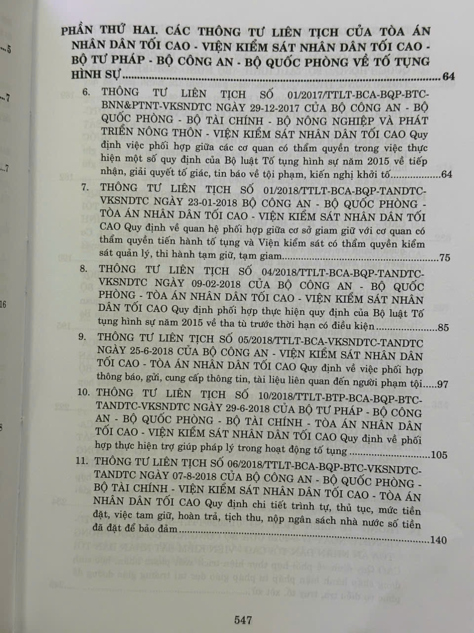 Phần thứ hai: Các Thông tư liên tịch của Tòa án nhân dân tối cao – Viện Kiểm sát nhân dân tối cao – Bộ Tư pháp – Bộ Công an – Bộ Quốc phòng về tố tụng hình sự