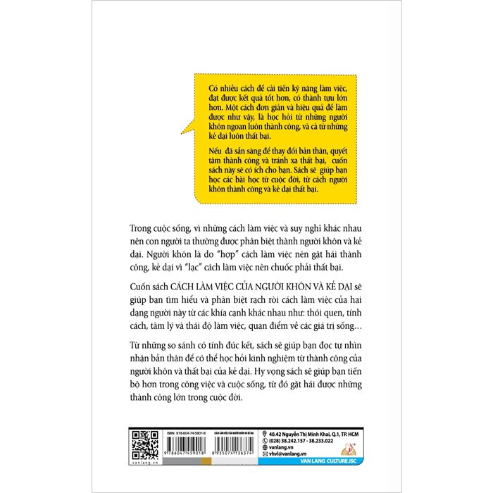 Có nhiều cách để cải tiến kỹ năng làm việc, đạt được kết quả tốt hơn, có thành tựu lớn hơn. Một cách đơn giản và hiệu quả để làm được như vậy, là học hỏi từ những người khôn ngoan luôn thành công, và cả từ những kẻ dại luôn thất bại. Trong cuộc sống, vì những cách làm việc và suy nghĩ khác nhau nên con người ta thường được phân biệt thành người khôn và kẻ dại. Người khôn là do “hợp” cách làm việc nên gặt hái thành công, kẻ dại vì “lạc” cách làm việc nên chuốc phải thất bại
