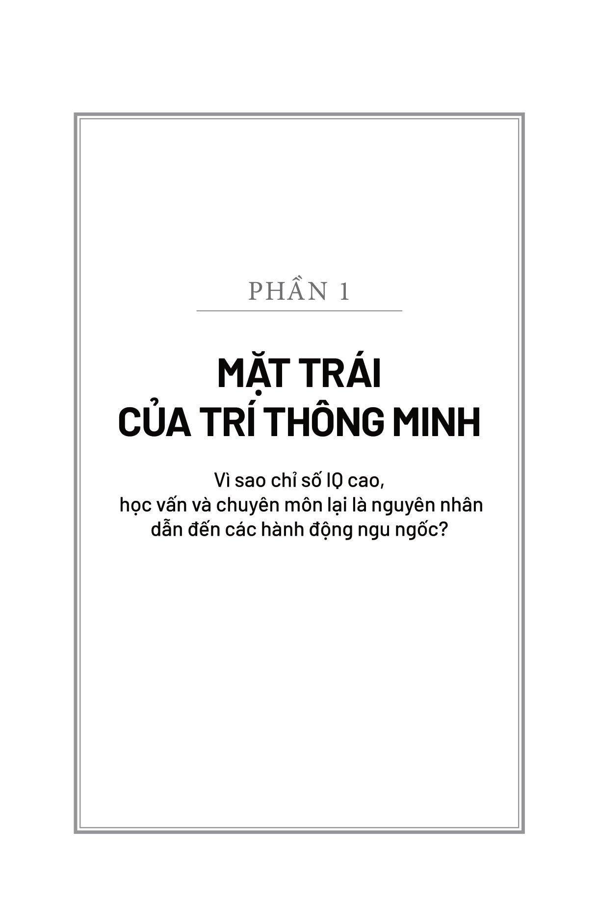 Cuốn sách này viết về nguyên nhân khiến những người thông minh hành động ngớ ngẩn và vì sao trong một số trường hợp họ lại dễ mắc sai lầm hơn những người bình thường. Cuốn sách cũng đưa ra các chiến lược mà tất cả chúng ta có thể áp dụng để tránh mắc phải những sai lầm tương tự: những bài học giúp chúng ta suy nghĩ kỹ càng và sáng suốt hơn trong thế giới hậu sự thật này.