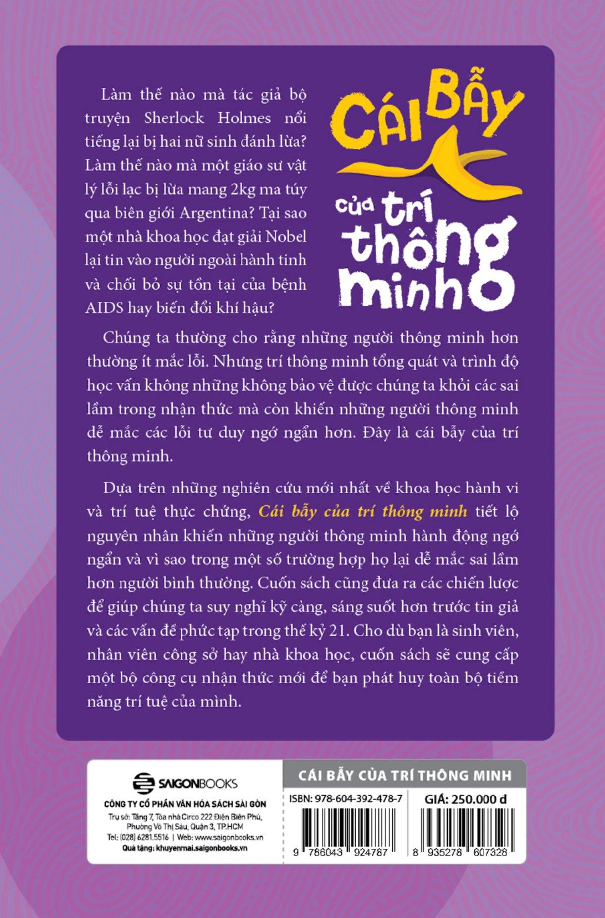 Nhà tâm lý học vĩ đại của thế kỷ 19 William James đã từng nói: “Nhiều người tưởng họ đang suy nghĩ, trong khi họ thực ra chỉ đang sắp xếp lại thiên kiến của m.ình”. Cái Bẫy Của Trí Thông Minh là cuốn sách viết cho những người muốn tránh khỏi việc mắc phải sai lầm này – đây là cuốn cẩm nang dành cho cả bộ môn khoa học và nghệ thuật về trí tuệ.
