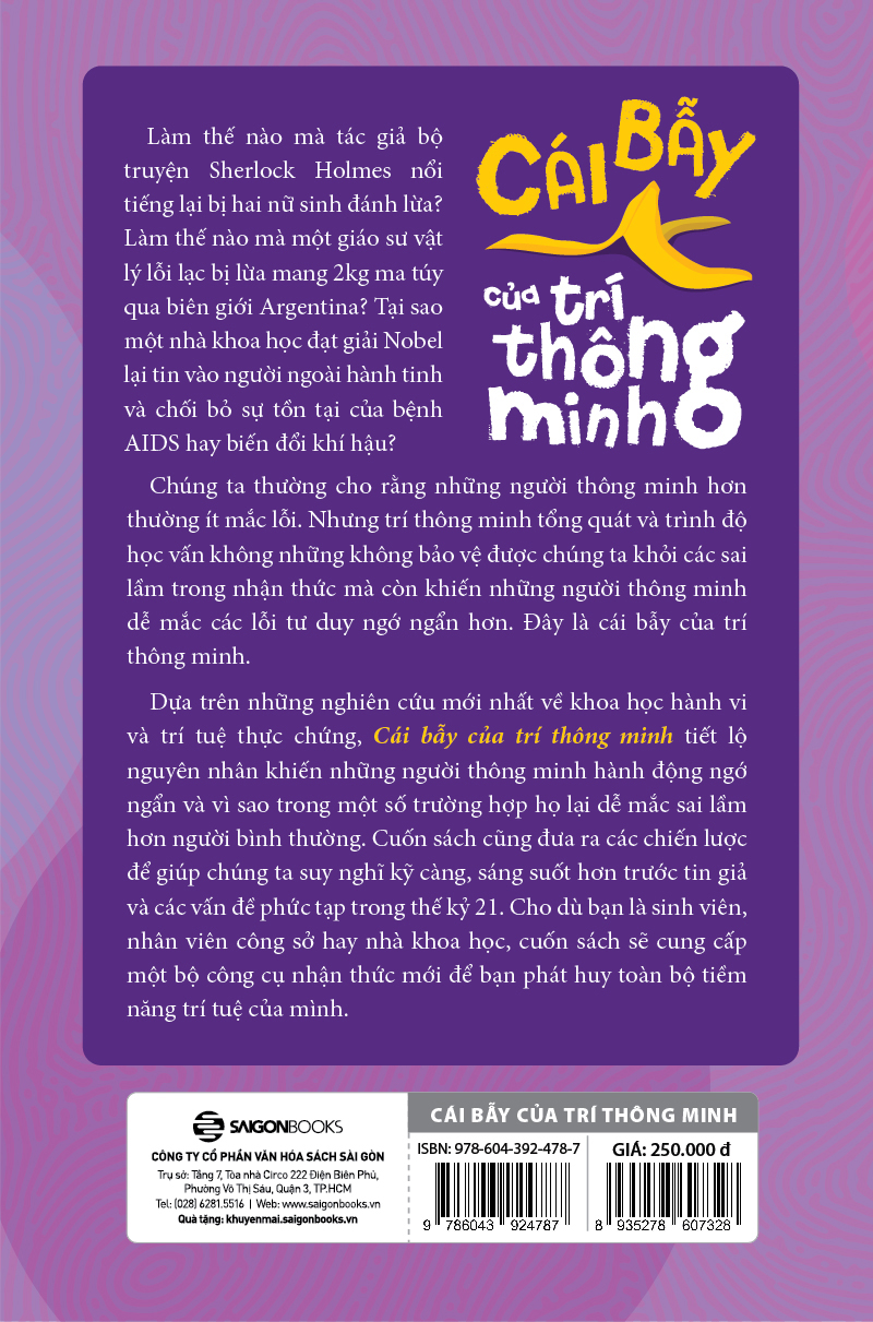 The Intelligence Trap: Why Smart People Make Dumb Mistakes như Paul Frampton – một nhà vật lý học tài ba đã bị lừa. Argentina và tác giả nổi tiếng Arthur Conan Doyle đã bị hai nữ sinh lừa gạt. Chúng ta cũng sẽ nhận ra các sai lầm tương tự trong cách tư duy có thể khiến cho bất cứ ai với trí thông minh hơn mức trung bình bị đánh lừa.