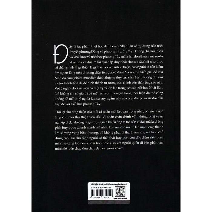 Đây là tác phẩm triết học đầu tiên ở Nhật Bản có sự dung hòa triết thuyết phương Đông và phương Tây. Cái thiện không chỉ giới thiệu và khái lược về triết học phương Tây một cách đơn thuần, mà nó đã khai phá và đưa ra lời giải đáp duy nhất cho các câu hỏi như thực tại chân chính là gì, thiện là gì, thế nào là hành vi thiện, con người ta nên kiếm tìm sự an lòng trên phương diện tôn giáo ở đâu? Và những kiến giải đó của Nishida cũng nhằm mục đích đánh thức tư duy của các nhà tư tưởng đời sau và trở thành tiền đề để hình thành tư tưởng của chính bản thân ông sau này. Với ý nghĩa đó, Cái thiện có một vị trí lớn lao trong lịch sử triết học Nhật Bản. Nó không chỉ có giá trị về mặt lịch sử, mà ngay trong thời hiện đại nó cũng không hề mất đi ý nghĩa khi sự suy ngẫm này của ông đã tạo ra sự đối đầu triệt để với triết học phương Tây.