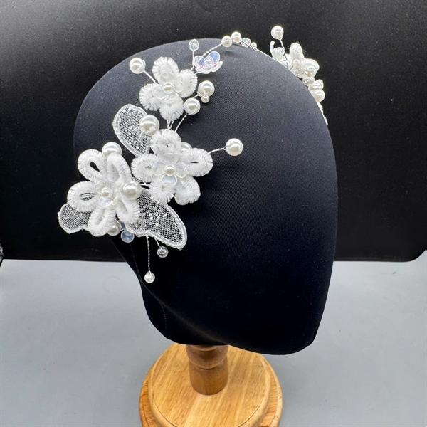 Trâm cài tóc cô dâu thiết kế ngọc trai và hoa 5 canh mềm mại, nữ tính. Tôn lên vẻ đẹp cho mái tóc xinh. Thích hợp trang điểm, make up cô dâu, trang điểm