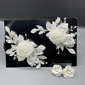 Cài tóc cô dâu hoa trắng kèm bông tai cùng bộ