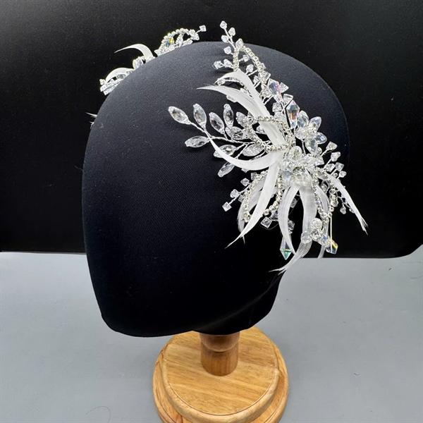 ✨Cài tóc cô dâu lông vũ trắng hết hạt hoa pha lê mới t12/2024
