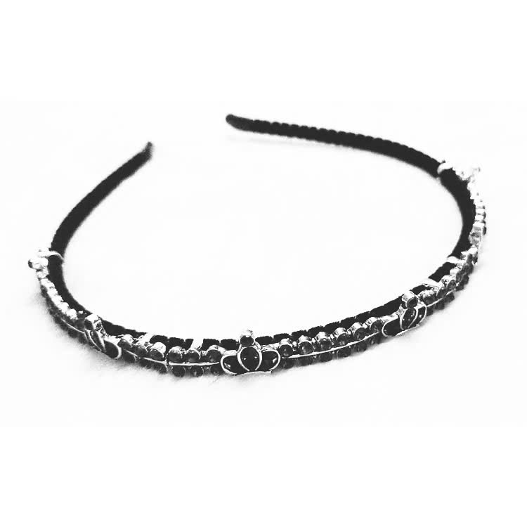 ✨Cài tóc đen đính đá hình vương miện đá xanh đen