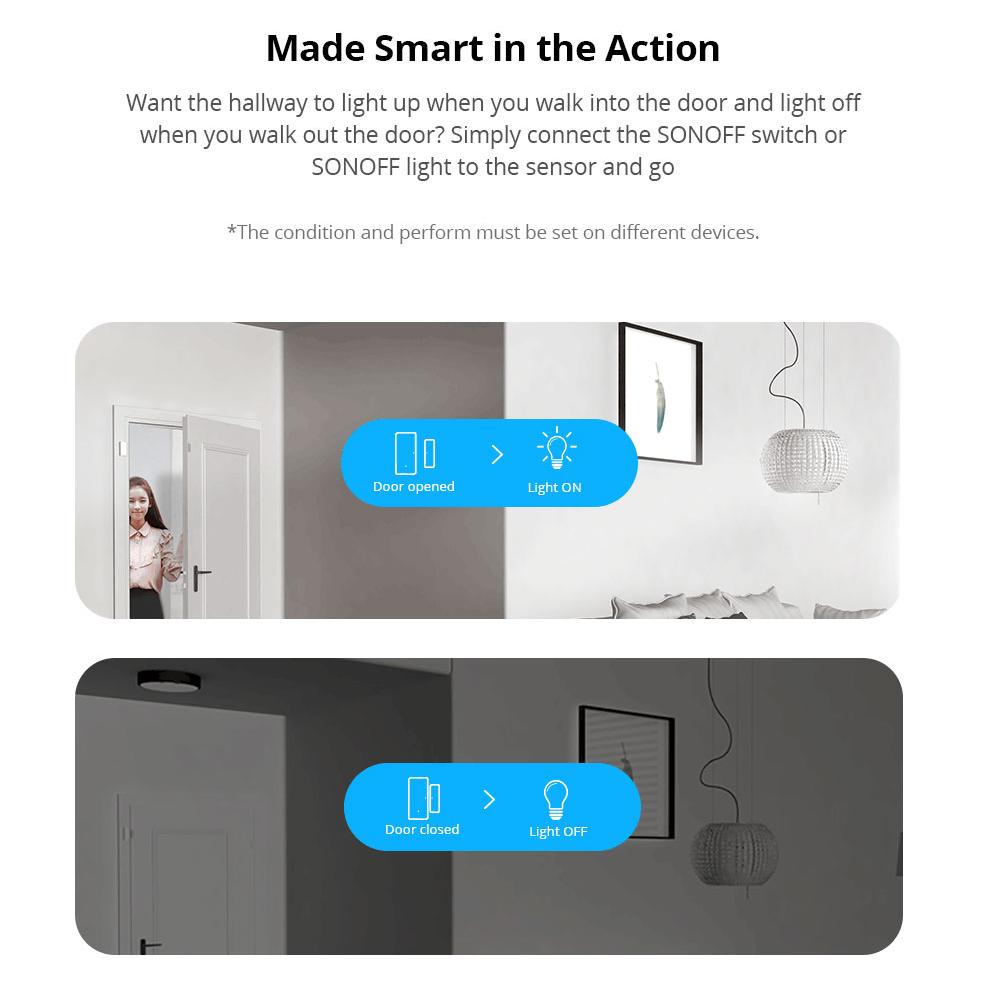 - Made Smart in the Action: Want the hallway to light up when you walk into the door and light off when you walk out the door? Simply connect the SONOFF switch or SONOFF light to the sensor and go.
