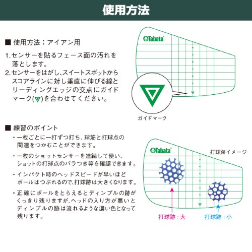 Cảm biến mặt gậy Iron GV0334 ghi lại điểm đánh của quả bóng trên giấy nhạy cảm với áp lực loại nhãn dán. Số lượng: 16 tờ. Điểm tròn Hiểu hướng dao động. Đối với Bàn ủi phục vụ 16 tờ Vì giấy nhạy cảm với áp suất cũng có thể được quấn quanh phần đế. Bạn cũng có thể kiểm tra hướng xoay. Kích thước gói 130 × 98 (mm)