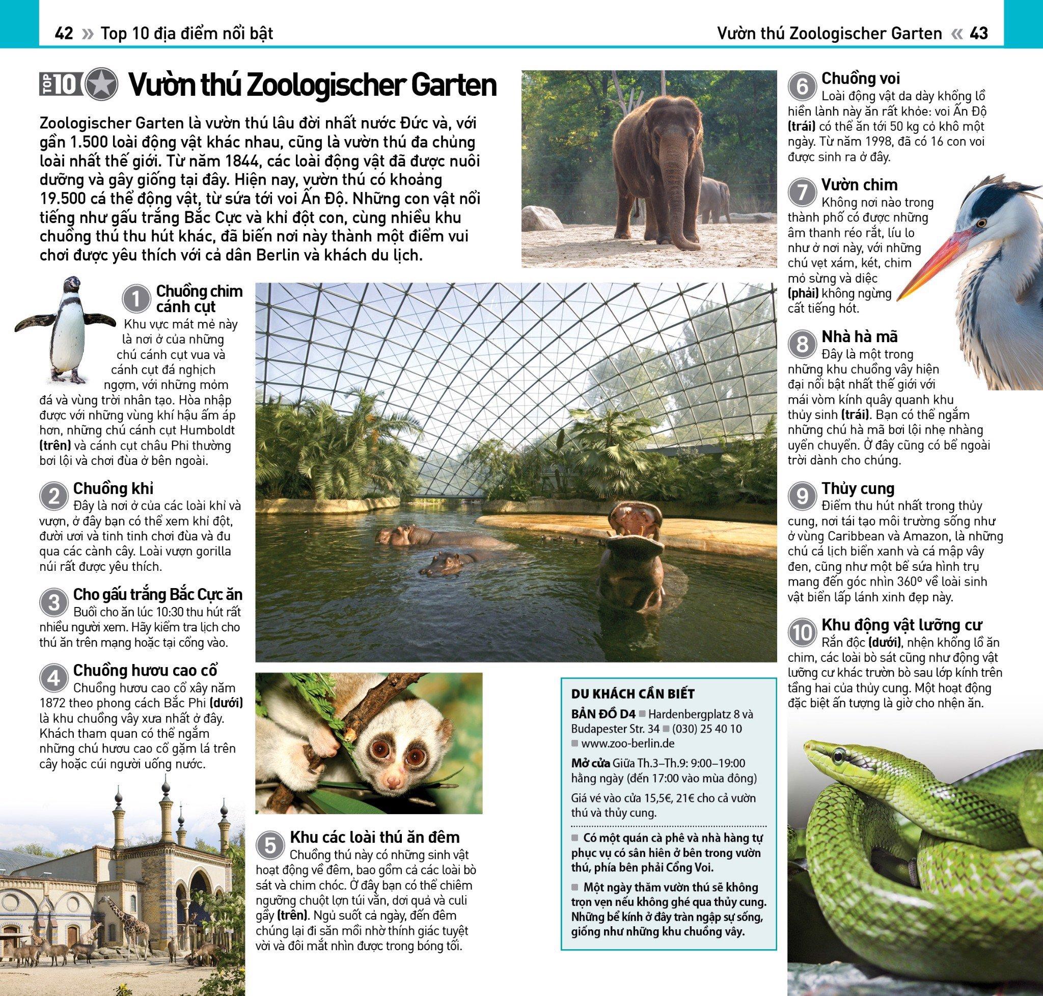 Hiếm có thành phố châu Âu nào trải qua nhiều thăng trầm như Berlin. Từ trung tâm quyền lực của Đế quốc Phổ và pháo đài Quốc xã đến một “thành phố chết” trong Chiến tranh Lạnh rồi hồi sinh với tư cách thủ đô của nước Đức thống nhất – Berlin còn trải qua nhiều biến động hơn nữa. Cẩm nang du lịch – Top 10 Berlin sẽ cùng bạn khám phá thành phố đầy sức hấp dẫn này. Ngày nay, minh chứng về những biến động lịch sử vẫn còn hiển hiện ở mỗi góc phố ngả đường Berlin. Đi dạo dọc Đại lộ Unter den Linden sẽ dẫn bạn từ Cổng thành Brandenburger Tor cổ xưa qua những bộ máy chính phủ cũ của Đế chế Thứ ba tới những kho tàng thế giới ở Đảo Bảo Tàng. Ngay phía trước đó là Quảng trường Alexanderplatz theo kiến trúc xã hội chủ nghĩa. Chính sự đa sắc thái này đã tạo nên nét quyến rũ của Berlin.  Đối với nhiều du khách, điểm hấp dẫn nhất của thành phố là những hoạt động nghệ thuật lí thú và sự đa dạng của các quán xá và câu lạc bộ đêm. Tinh thần của Thập niên Vàng vẫn còn sống mãi nơi đây, và Berlin luôn chuyển động không ngừng nghỉ. Bạn làm được những gì phụ thuộc vào việc bạn có thể thức được bao lâu, đây không phải là thành phố dành cho những người thích dậy sớm. Nhưng vẫn còn chưa hết. So với một thủ phủ, Berlin nhiều cây xanh một cách đáng ngạc nhiên, với những công viên rộng lớn như Công viên Groβer Tiergarten hay Công viên Volkspark Friedrichshain luôn đông nghịt người chạy bộ và đạp xe – ở đất nước nổi tiếng với những con đường quốc lộ này lại ngày càng có nhiều người thay ô tô bằng xe đạp.  Top 10 Berlin sẽ tổng hợp những gì tuyệt vời nhất nơi đây, từ những quán cà phê thời thượng ở Khu Prenzlauer Berg tới những câu lạc bộ đêm ở Khu Kreuzberg và những khuôn viên hoàng gia ở Khu Charlottenburg, thêm vào những mẹo nhỏ hữu ích, những trải nghiệm miễn phí, 12 gợi ý lộ trình tham quan được nhiều thắng cảnh trong thời gian ngắn nhất, hình ảnh truyền cảm hứng và những tấm bản đồ chi tiết, vậy là bạn đã có được người bạn đồng hành lí tưởng cho chuyến đi của mình. Chúc bạn có một trải nghiệm tuyệt vời với Berlin, và với cuốn sách này. Cuốn sách nằm trong bộ Cẩm nang du lịch. Bộ sách xuất bản đợt 1 gồm 4 cuốn: Cẩm nang du lịch - Top 10 Berlin Cẩm nang du lịch - Top 10 Singapore Cẩm nang du lịch - Top 10 Paris Cẩm nang du lịch - Top 10 Bắc Kinh Bộ sách nhỏ gọn và đầy ắp thông tin thiết thực này sẽ chia các thành phố thành các khu vực để người đọc dễ định hình và lên kế hoạch tham quan từng khu vực. Trong sách sẽ có: