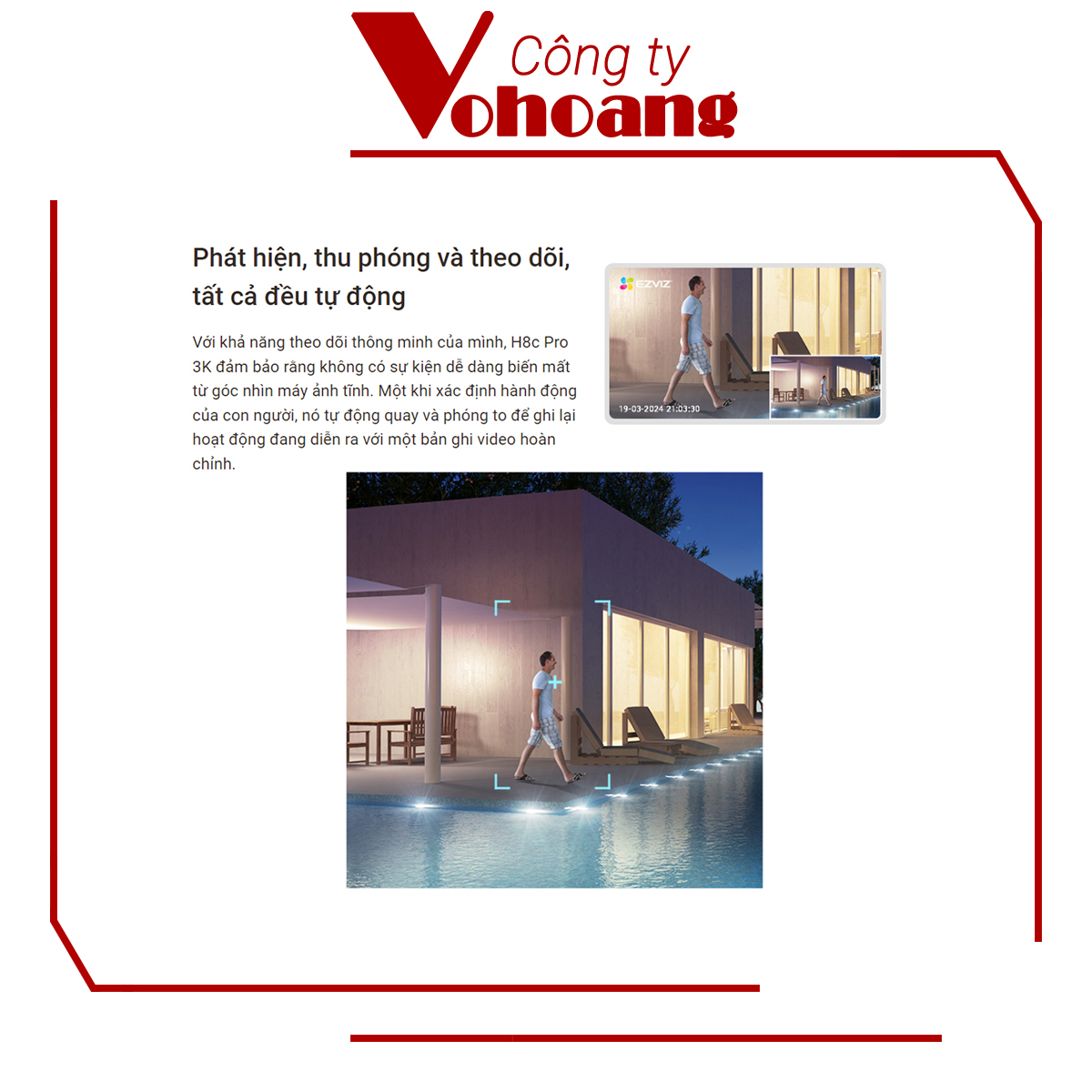 ❈ GIỚI THIỆU TÍNH NĂNG SẢN PHẨM ❈ ➤ Tên sản phẩm: Camera Ezviz H8C Pro 5MP (3K) Ngoài Trời Rõ Nét, WiFi Xoay 360 Độ, Có Màu Ban Đêm, Đàm Thoại 2 Chiều, Chống Nước - Hàng Chính Hãng ➤ Camera H8C Pro 5MP (3K) hỗ trợ quay quét 360 độ, giám sát toàn cảnh không góc chết. ➤ Tính năng có màu ban đêm độc đáo, cho hình ảnh rõ nét ngay cả trong bóng tối. ➤ Đàm thoại 2 chiều tiện lợi, giao tiếp trực tiếp qua ứng dụng mọi lúc mọi nơi. ➤ Chống nước IP66, phù hợp lắp đặt ngoài trời. ➤ Độ phân giải 5MP (3K) sắc nét, vượt xa chất lượng 2MP và 3MP của dòng phổ thông. ➤ Tích hợp AI thông minh, phát hiện chuyển động chính xác hơn. ➤ Hỗ trợ lưu trữ đám mây hoặc cần thẻ nhớ. ➤ Có chế độ tầm nhìn ban đêm màu sắc. ➤ Thiết kế chắc chắn với vỏ hợp kim, bền hơn các dòng camera nhựa phổ thông. ➤ Hỗ trợ kết nối WiFi mạnh mẽ, ổn định hơn. ➤ Cảnh báo xâm nhập qua điện thoại. ➤ Tích hợp khe cắm thẻ nhớ lên đến tối đa 512GB. ➤ Chống bụi và va đập tốt hơn, lý tưởng cho môi trường khắc nghiệt. ➤ Giao diện ứng dụng thân thiện, dễ sử dụng. ➤ Bảo hành: 2 năm