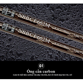 Mua tại TiktokThương hiệu: Noeby (shop phân phối chính hãng) Dòng sản phẩm: Leisure K6 Model:NBBF802MNBBCF762MHNBBF762MHNBBCF762MNBBF762MNBBCF702MHNBBCF702MNBBF702MNBBF702MLNBBCF662MHNBBCF662MNBBF662MNBBF662ML Phôi carbon xoắn X Guide: 7 + 1/8 + 1/9 + 1 (K&KW frame, SIC guides) Độ dài: 1.98-2.44m Độ dài thu gọn: 103-125cm Số khúc: 2 Đường kính ngọn: 1.8-1.9mm Đường kính gốc: 11.0-12.3mm Lure: 7-40g Chịu tải: 4-20lb Trọng lượng: 111-145g Carbon 95% Cần máy đứng (đối với mã NBBF, cần máy ngang (đối với mã NBBCF) NOEBY là thương hiệu sản phẩm câu cá đang rất được ưa chuộng trên Thế giới nói chung và ở Việt Nam nói riêng. Với hơn 15 năm kinh nghiệm và hơn 20 công nghệ được cấp bằng sáng chế, sản phẩm của Noeby được đầu tư kỹ lưỡng về khâu thiết kế cũng như kiểm tra chất lượng sản phẩm tỉ mĩ trước khi xuất xưởng. Qua thực tế kiểm nghiệm, anh em đam mê câu cá đã đánh giá cao chất lượng cũng như mẫu mã của Noeby trong thời gian sử dụng vừa qua. Chính vì lý do đó, shop đồ câu DanaFishing chúng tôi đã cố gắng trở thành kênh phân phối chính hãng dòng thương hiệu sản phẩm này, với mong muốn đem đến cho anh em thêm sự lựa chọn về sản phẩm chính hãng, nhập trực tiếp từ hãng, không lo hàng trôi nổi, hàng nhái, hàng tút, …