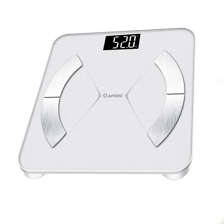 - Cân sức khỏe Rapido sử dụng cảm ứng lực với độ chính xác cao. Có khả năng phân tích được các chỉ số: