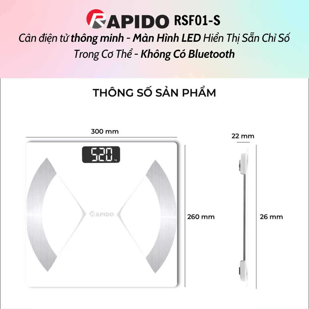 Cân sức khỏe phân tích chỉ số cơ thể Rapido RSF01 - Hàng Chính Hãng, bảo hành 12 tháng