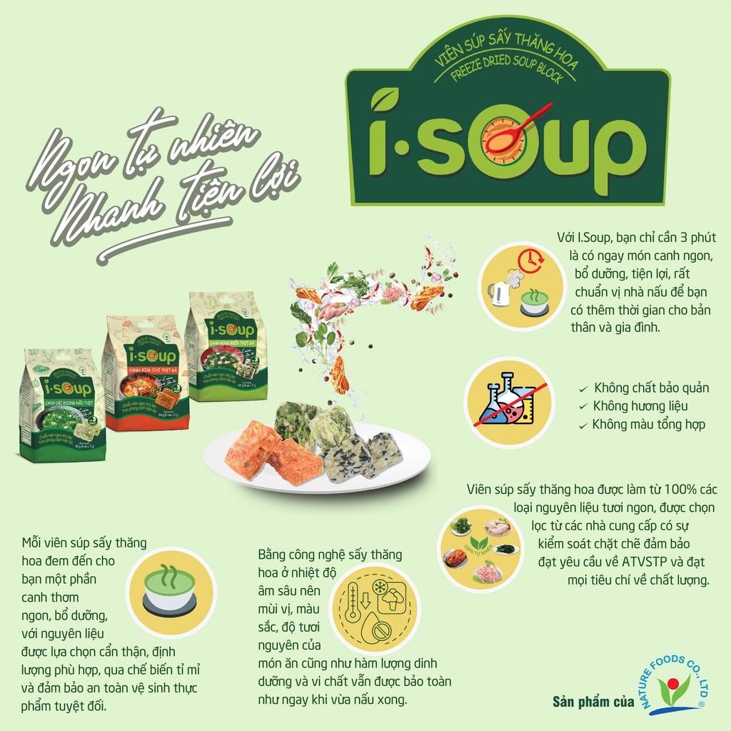 ✨Canh kim chi thịt gà ăn liền I-Soup 66g (túi 06 viên cho 06 khẩu phần ăn)-Canh sấy lạnh công nghệ Nhật Bản