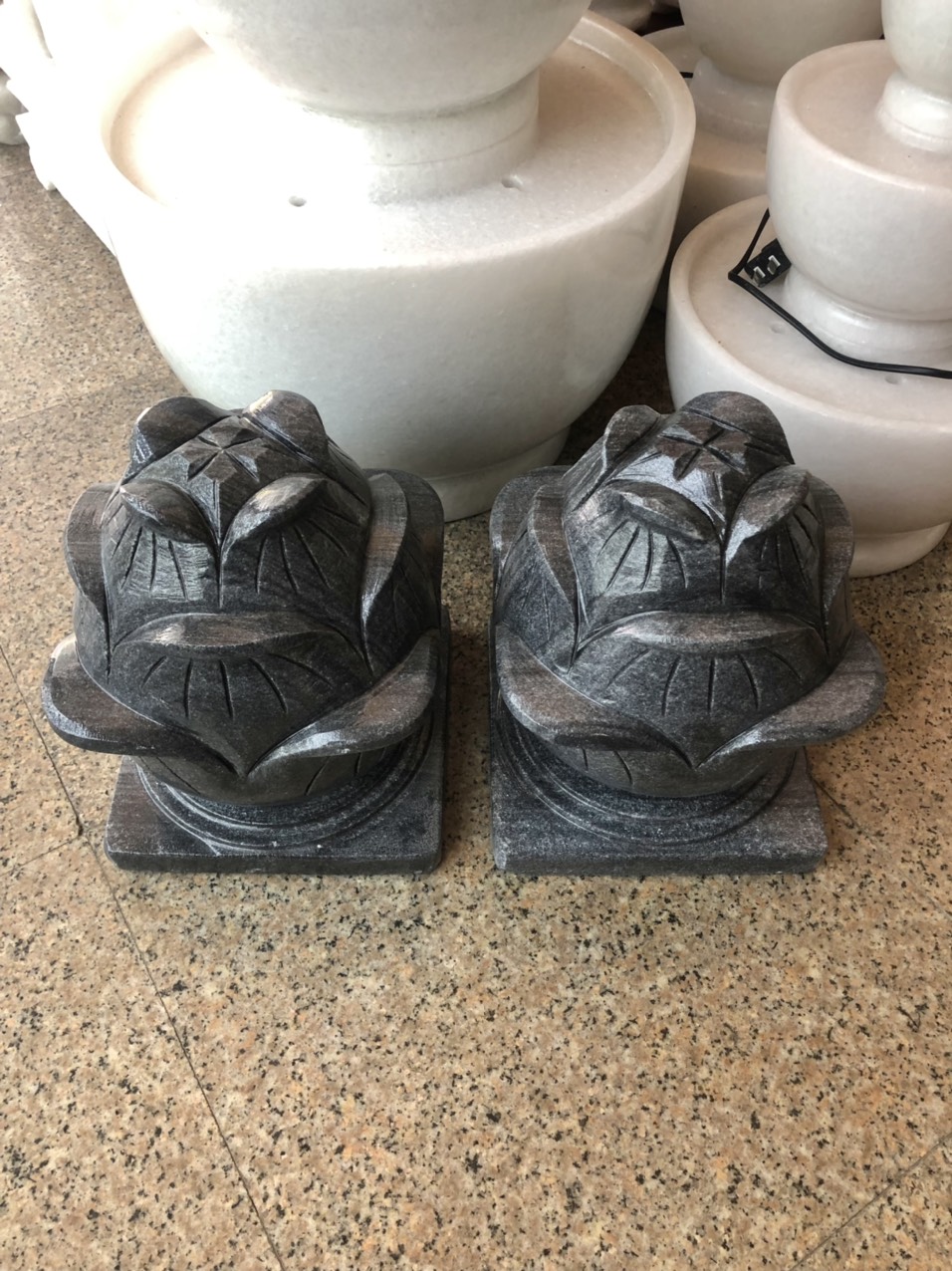 ✨Cặp búp sen đá trang trí đá cẩm thạch vân đen đế vuông trang trí mộ, đền thờ - Cao 25 cm