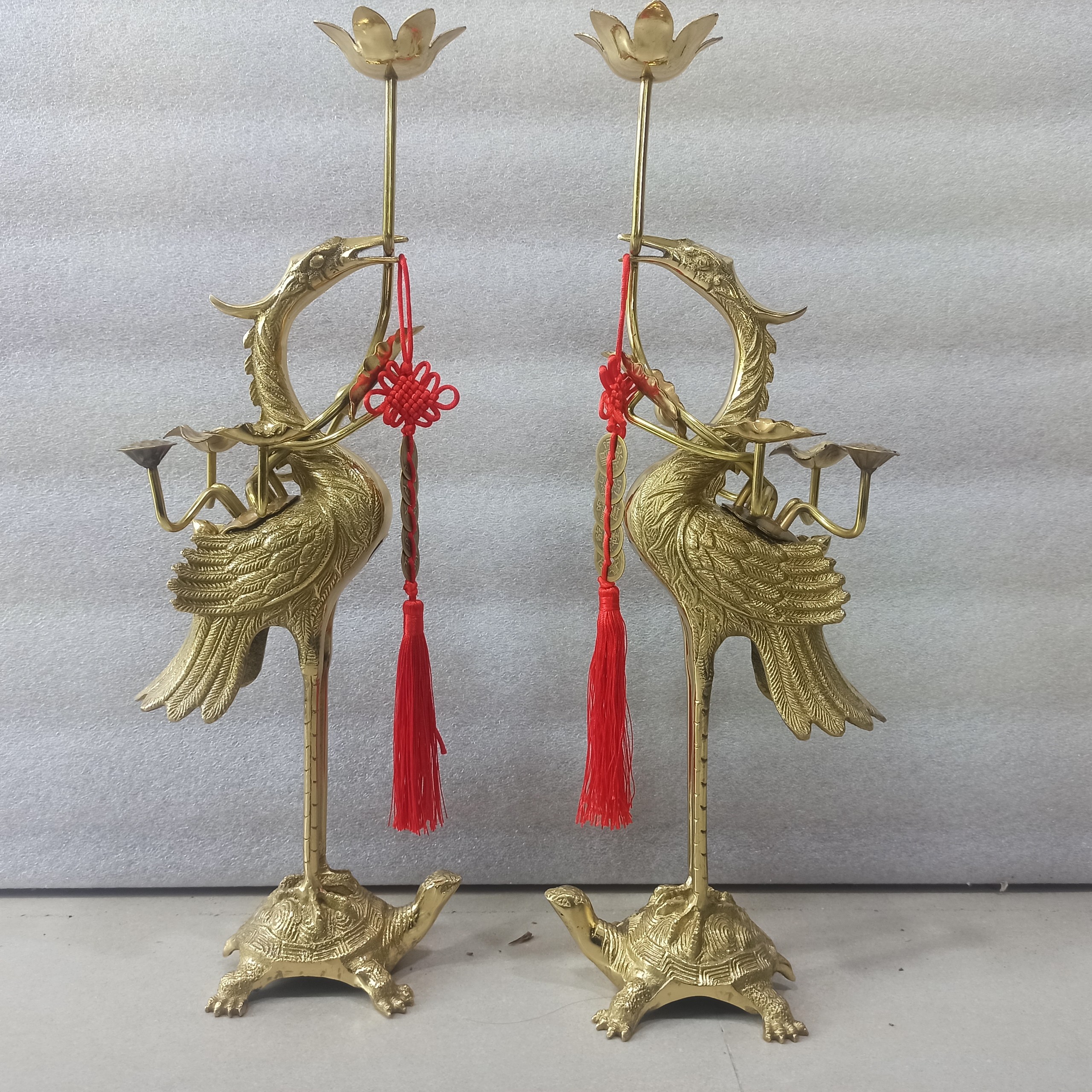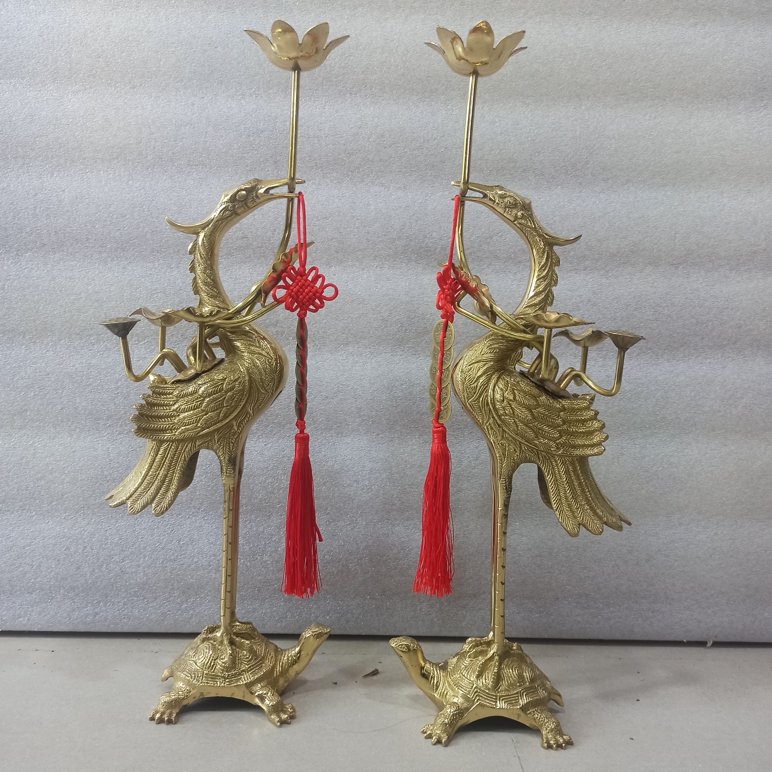 Cặp hạc cưỡi rùa cõng sen bằng đồng Chất liệu đồng vàng màu vàng bóng màu hun cạo Có các kích thước sau Cao 47cm nặng 3.2kg/1 đôi Cao 53cm nặng 3.8kg/1 đôi