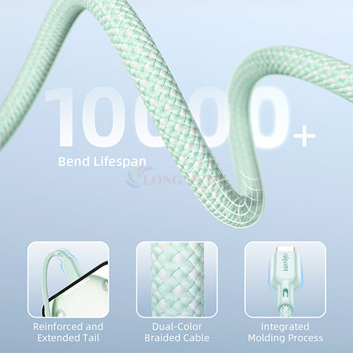 Cáp sạc nhanh 240W, bền bỉ, chịu được hơn 10.000 lần uốn cong, phù hợp cho các thiết bị công suất cao. Thông tin sản phẩm: Công suất: 240W Tốc độ truyền dữ liệu: 480Mbps Chiều