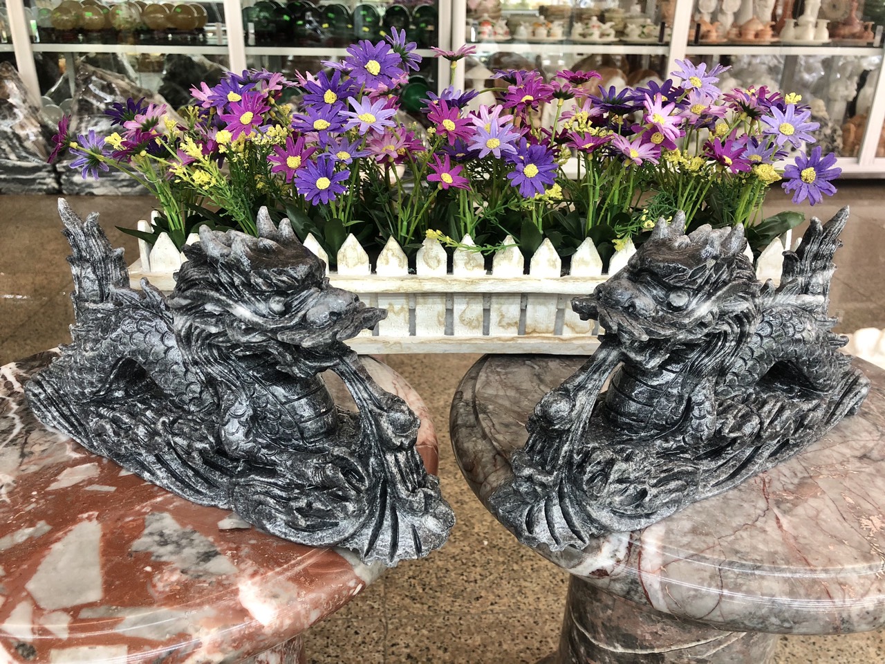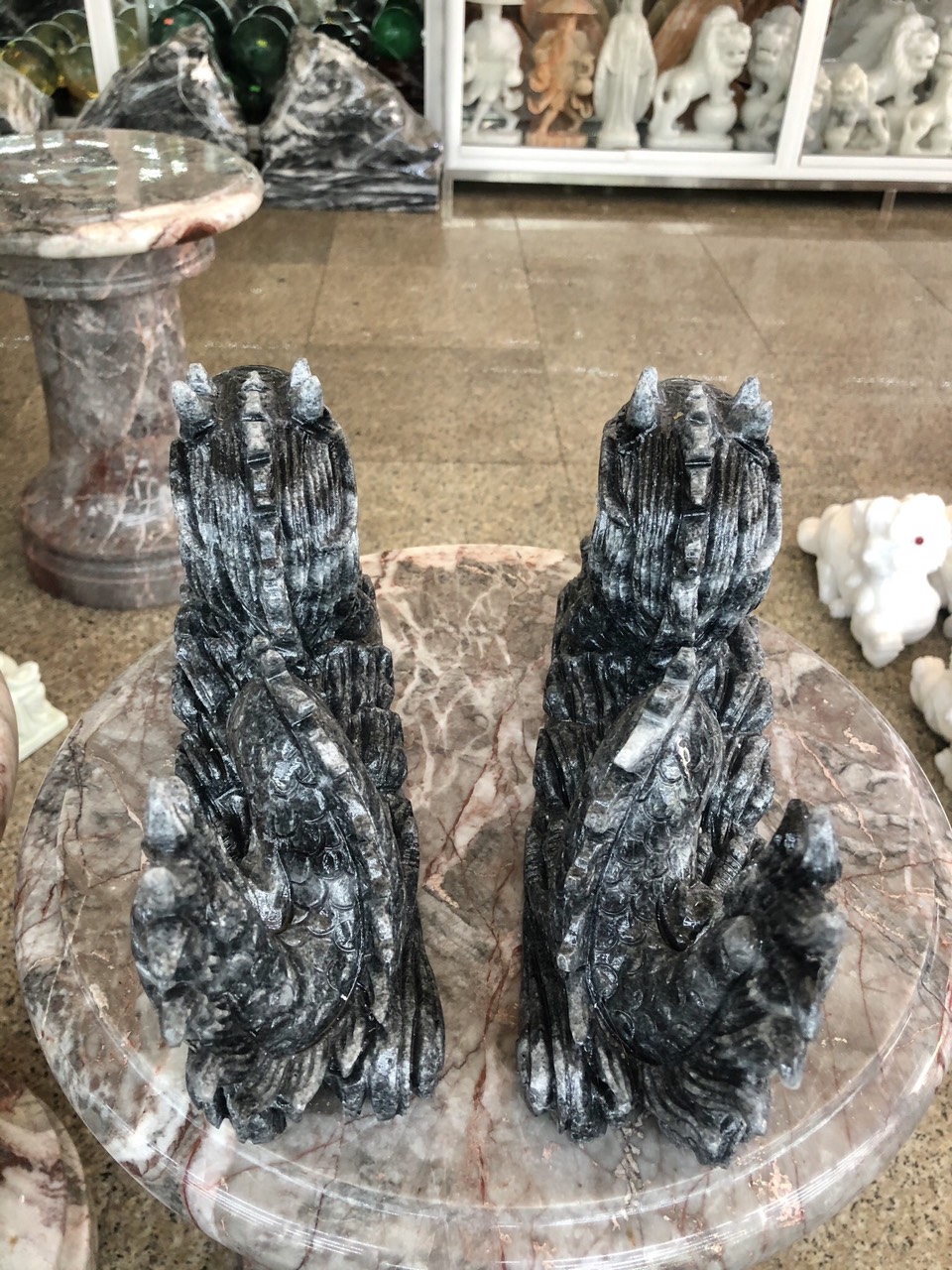 ✨Cặp Rồng nằm phong thủy đá cẩm thạch vân đen - Dài 30 cm