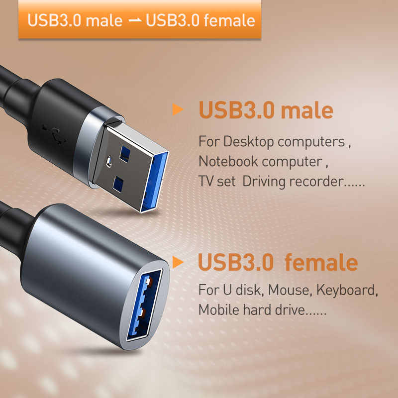 1. Length 0.5m 2. Input: USB 3.0 A Male 3. Output: USB 3.0 A Male 4. Speed up to 5Gbps 5. Support 2A Current 6. Multiple Interior Shielding 7. Aluminum case + Nylon braided 8.