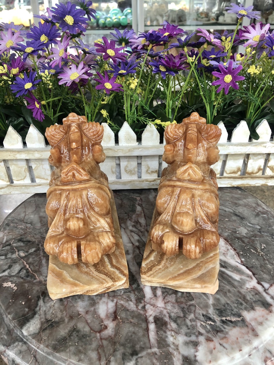 Hợp mệnh Thổ - Kim Chất liệu: Đá cẩm thạch vàng cà rốt Kích thước: Dài 15 cm X Rộng 6 cm x Cao 12,5 cm Khối lượng: 3,2 kg / cặp Ý nghĩa Tỳ