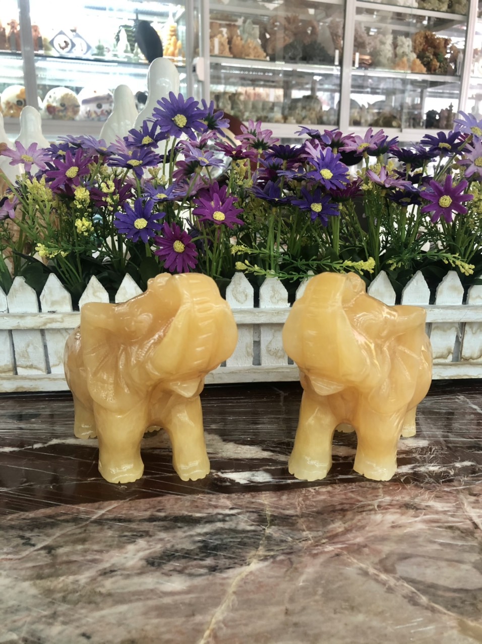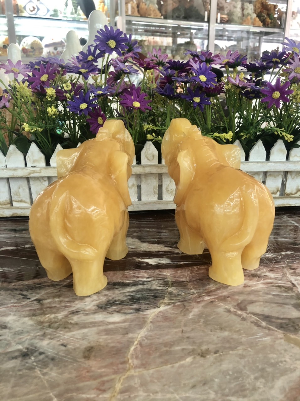 ✨Cặp voi phong thủy đá ngọc hoàng long - Dài 15 cm