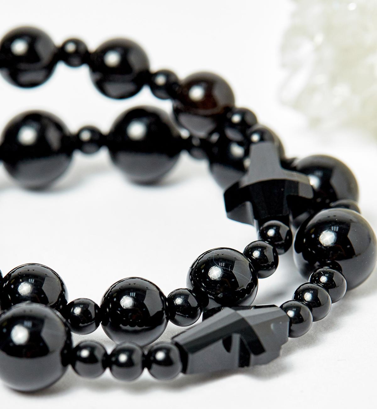 Cặp Vòng Chuỗi Mân Côi Mẹ Và Bé Đá Obsidian Đen Obsidian là viên đá hộ mệnh hấp thu những dụng ý xấu xa, sự ganh đua ghen ghét và tham lam của con người,