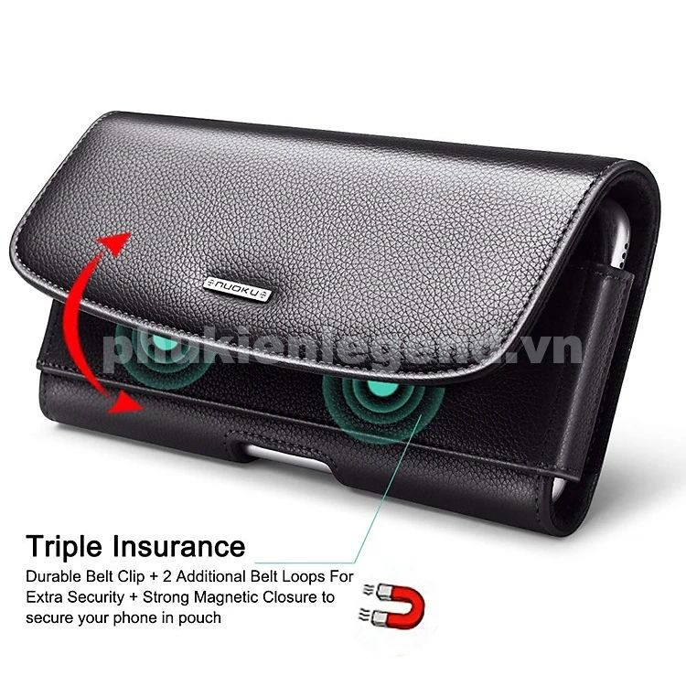 Case bao da đeo nịt da thật cho iPhone 11 12 13 14 Pro Max /15 Pro Max 14 Plus / Note 20 / S22 / S23 ultra/ S24 Ultra và các dòng máy từ 6.7 inch trở xuống hiệu Nuoku Elegant and Royal phiên bản đeo thắt lưng - chất liệu da thật cao cấp, có ngăn đựng thẻ, nắp gập hít nam châm