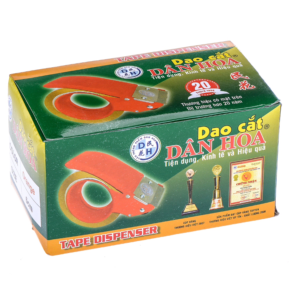 - Dao cắt băng keo Dân Hoa cầm tay kích thước 5cm giúp người sử dụng dễ dàng điều khiển việc cắt dán băng keo thật tiện lợi và an toàn với tay cầm chắc
