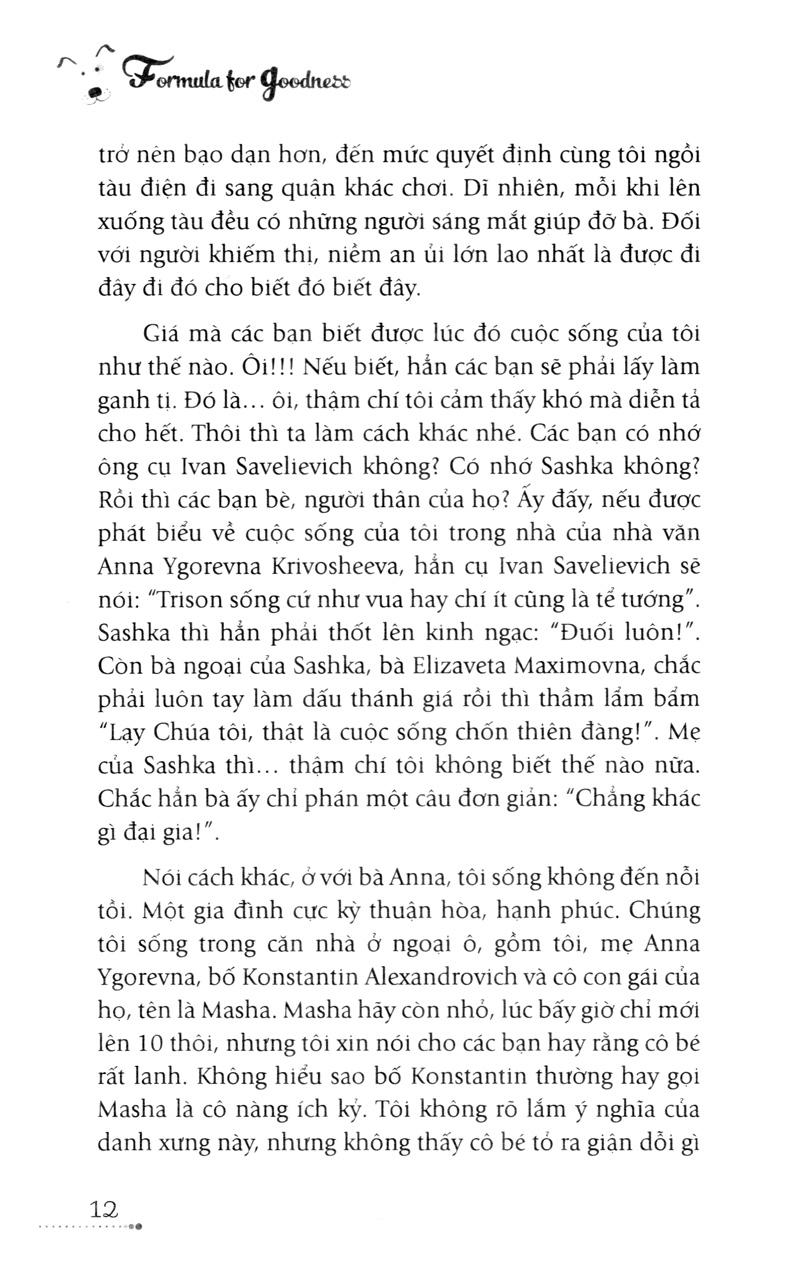 Trison không chỉ có những cuộc phiêu lưu đáng tự hào mà còn là những câu chuyện sâu sắc về tình yêu thương của con người dành cho vật nuôi và tình cảm của một chú chó dẫn đường dành cho những người khiếm thị. Trison hay gọi cuộc đời của mình như cách gọi của một số ít người là “Đời chó má”, cũng có nhiều thăng trầm, vui buồn như có lúc chú đã được sống trong ngôi nhà đầy tình yêu thương của nhà văn mù Anna Ygorevna Krivosheeva, hay cuộc sống với bà Polina Foteevna Ivankhnik phúc hậu nhưng lại trót làm bạn với bia rượu đã gây ra không ít rắc rối cho Trison. Bà đã khiến Trison phải bị bắt vào đồn công an vì bà đã lợi dụng Trison và biến cậu thành một công cụ để ăn cắp đồ của siêu thị. Đây có lẽ là điều khiến cho Trison thấy xấu hổ nhất trong cuộc đời làm chó dẫn đường của mình. Tuy nhiên, bên cạnh việc nghiện rượu, bà Polina cũng biết giúp đỡ người khác khi lâm vào cảnh khó khăn, dù rằng bà là một người già khuyết tật. Chính điều này đã khiến Trison cảm thấy yêu quý bà hơn sau những gì bà đã làm cho cậu.