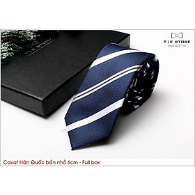 ✨Cavat Hàn Quốc bản nhỏ 6cm chuẩn công sở, chú rể - Cavat xanh kẻ trắng cao cấp Full box