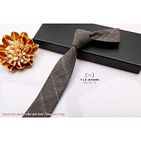 ✨Cavat nam Hàn Quốc cao cấp bản nhỏ (6cm) - Tặng kèm hộp, Màu nâu nhạt kẻ