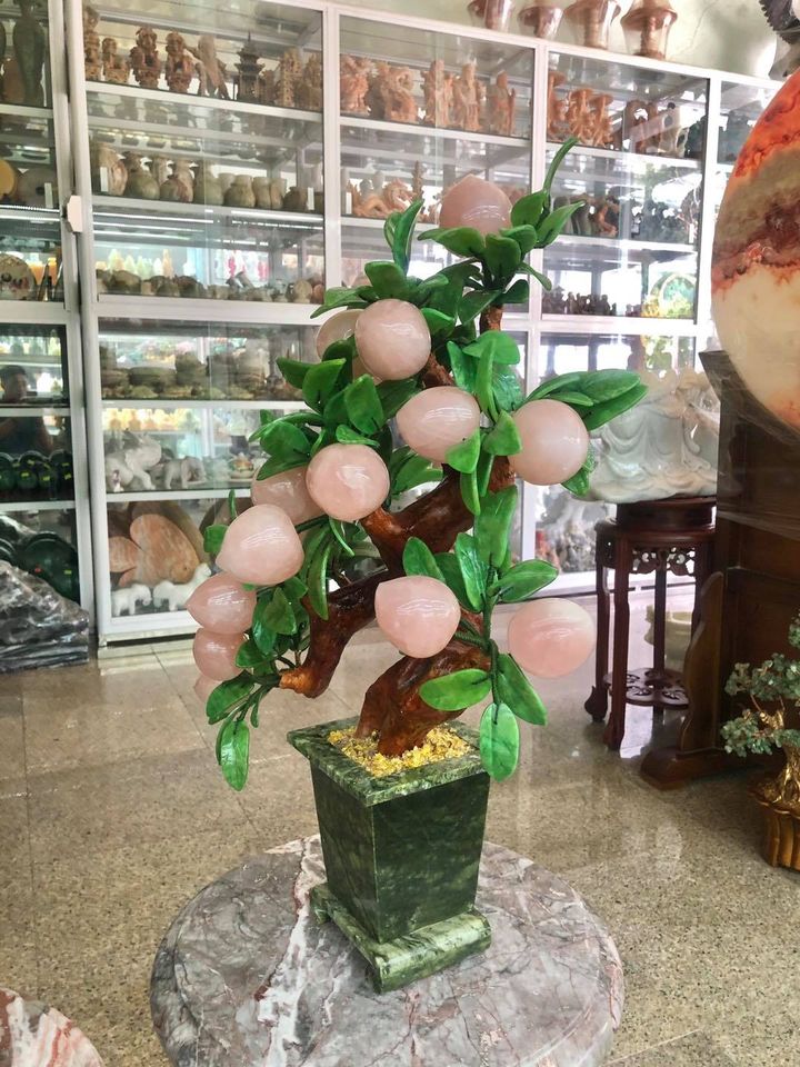 Cây đào phong thủy đá thạch anh hồng hàng đẹp 28 quả và 18 quả. Trường thọ, tài lộc ☎️: 0973156213