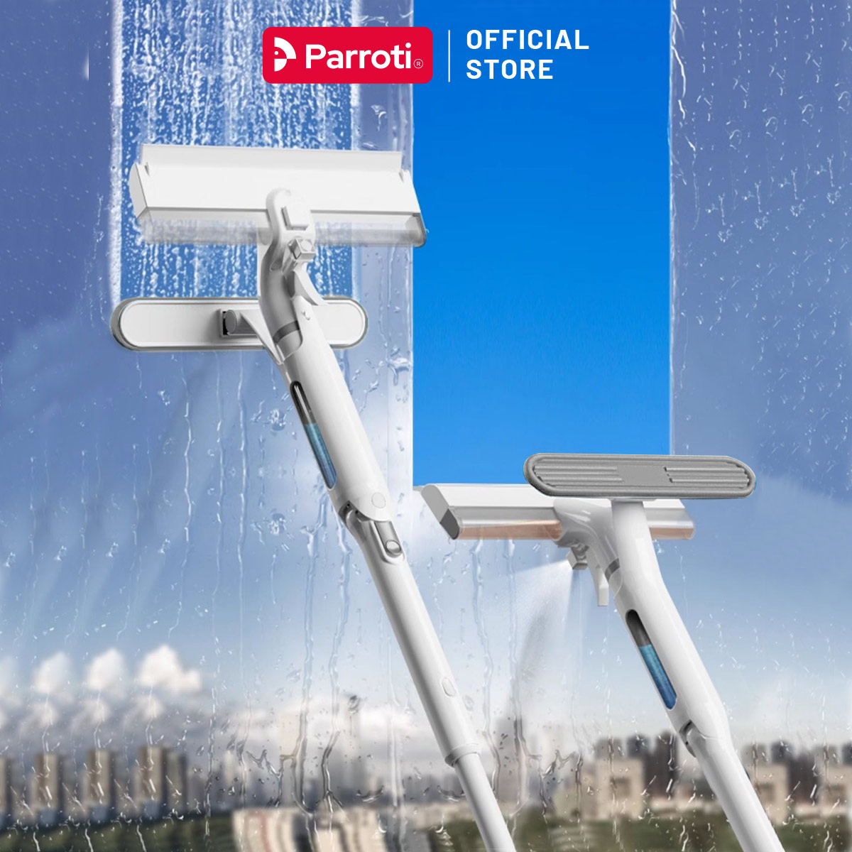 Cây lau kính, gạt chùi kính đa năng 4 trong 1,Có chức năng phun sương, gom được nước thừa trên kính - Parroti Shiny SN04 được thiết kế cực kỳ thông minh, thao tác đơn