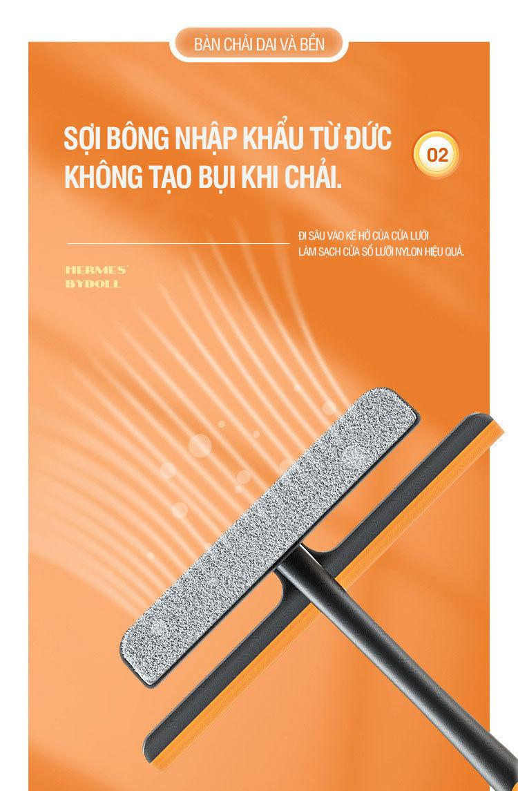 ✨Cây Lau Kính Thông Minh 3in1 Đa Năng Mini Xoay 360 Độ Nhỏ Gọn Tiện Lợi Với Tay Cầm Chống Trơn Màu Cam