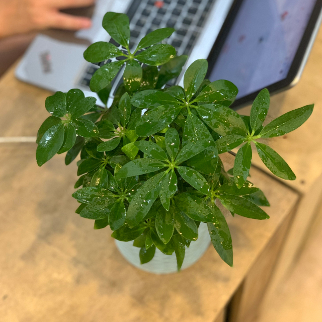 Cây ngũ gia bì trồng trong chậu nhựa. Cây cao 20 - 25cm. Cây có công dụng trang trí, để bàn, đuổi muỗi. Ưu điểm: cây dễ trồng, sống nơi râm mát hay ánh sáng