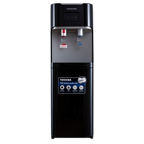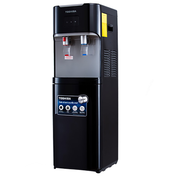 Kiểu dáng cây nước nóng lạnh Toshiba hiện đại, màu đen thanh lịch, kết cấu chắc chắn, tạo điểm nhấn cho không gian phòng khách, phòng làm việc, phòng bếp gia đình, công ty Nhiệt độ làm
