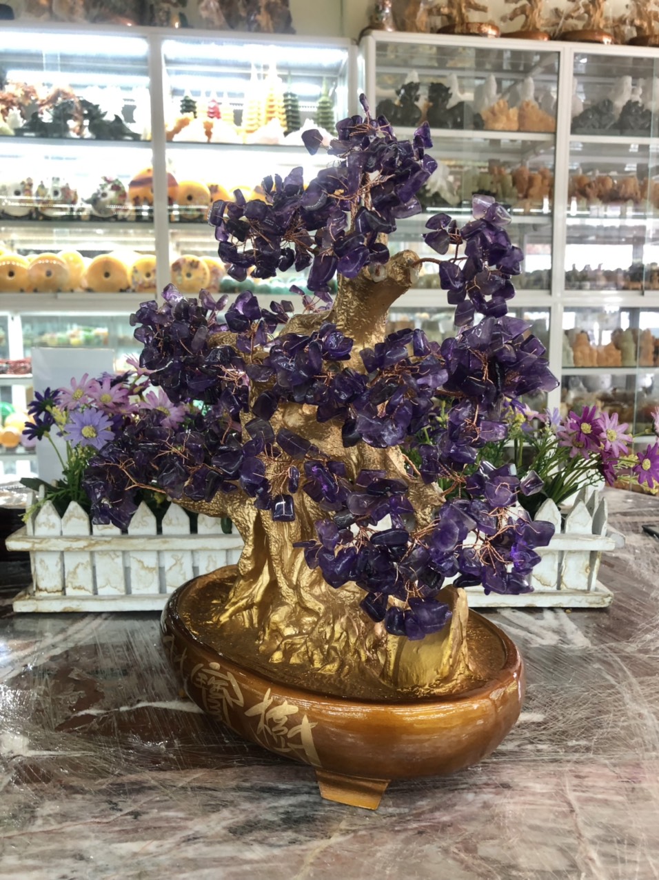 Hợp mệnh Hỏa - Thổ Chất liệu: Đá thạch anh tím Kích thước: Cao 30 cm Khối lượng: 1 kg Cây tài lộc là biểu tượng của sự sung túc, mang đến cát khí mạnh