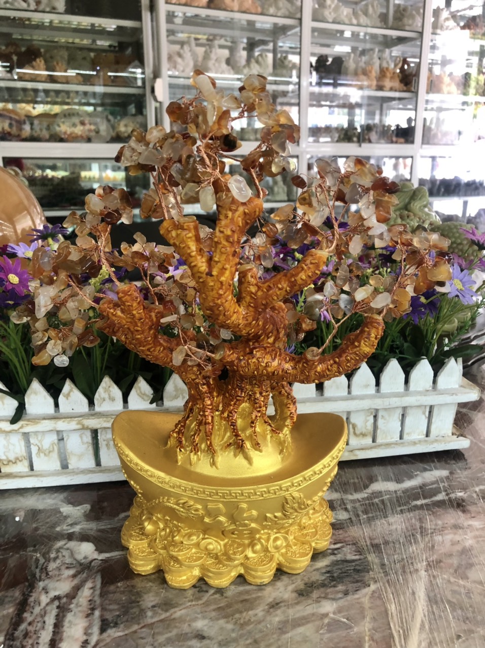 Hợp mệnh Thổ - Kim Chất liệu: Đá thạch anh vàng Kích thước: Dài 28 cm x Rộng 18 cm x Cao 40 cm Khối lượng: 3,8 kg Cây tài lộc là biểu tượng của