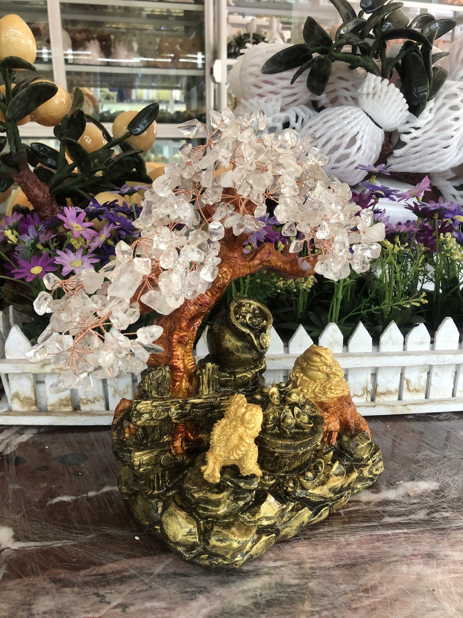 Hợp mệnh Thủy - Kim Chất liệu: Đá thạch anh trắng Kích thước: Dài 28 cm x Rộng 18 cm x Cao 40 cm Khối lượng: 3,8 kg Cây tài lộc là biểu tượng của
