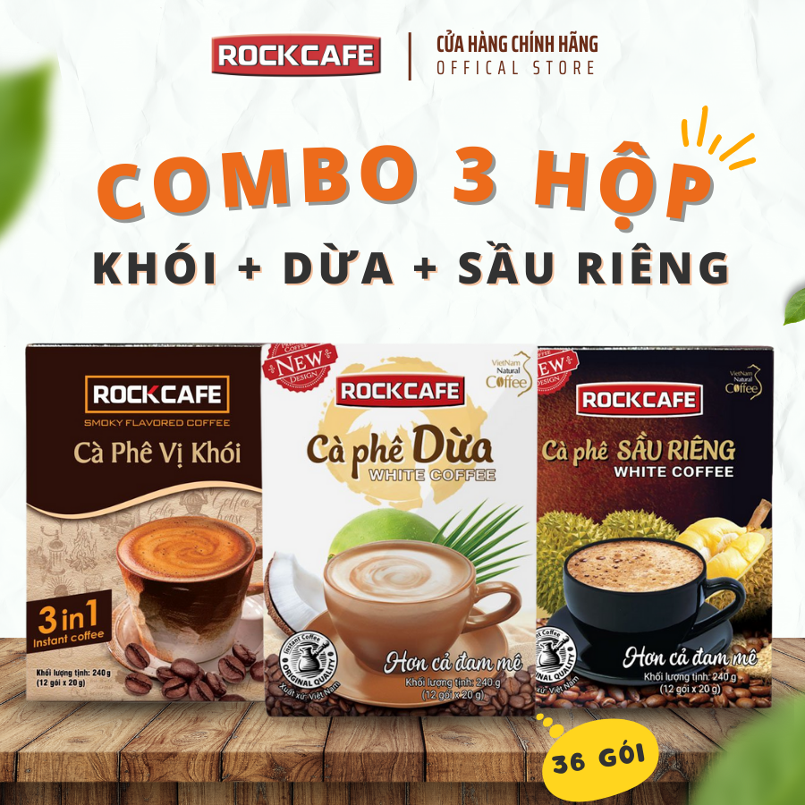 • RockCafe - Cà phê Sầu riêng White Coffee (Hộp 12 gói x 20 gr)