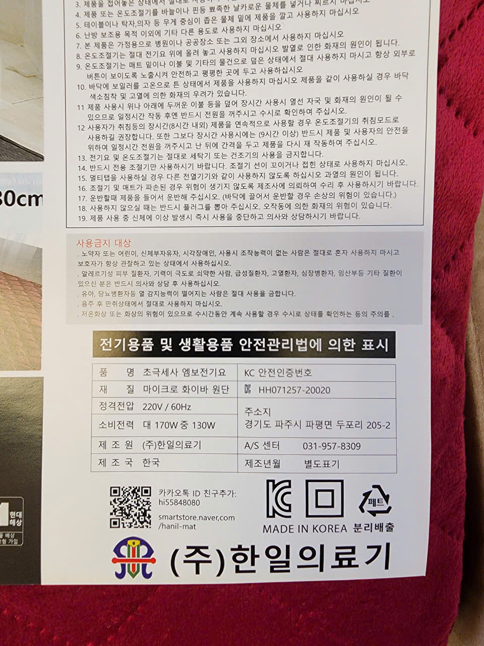 Chăn điện sưởi Hanil Hàn Quốc. Kích thước: 150*180cm (+\- 5cm ) Công suất : 120w Nhiệt độ : 7 mức điều chỉnh nhiệt độ. - Điện áp : 220v~60Hz - Xuất xứ : Hàn